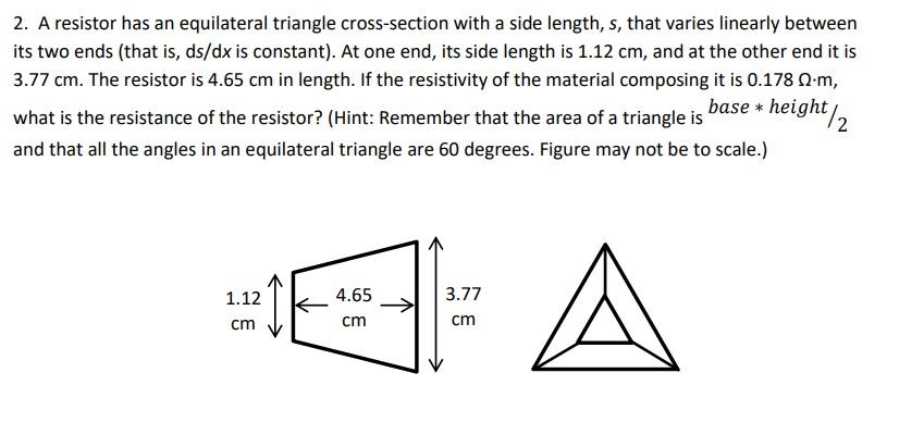 Solved 2 A Resistor Has An Equilateral Triangle Chegg Com